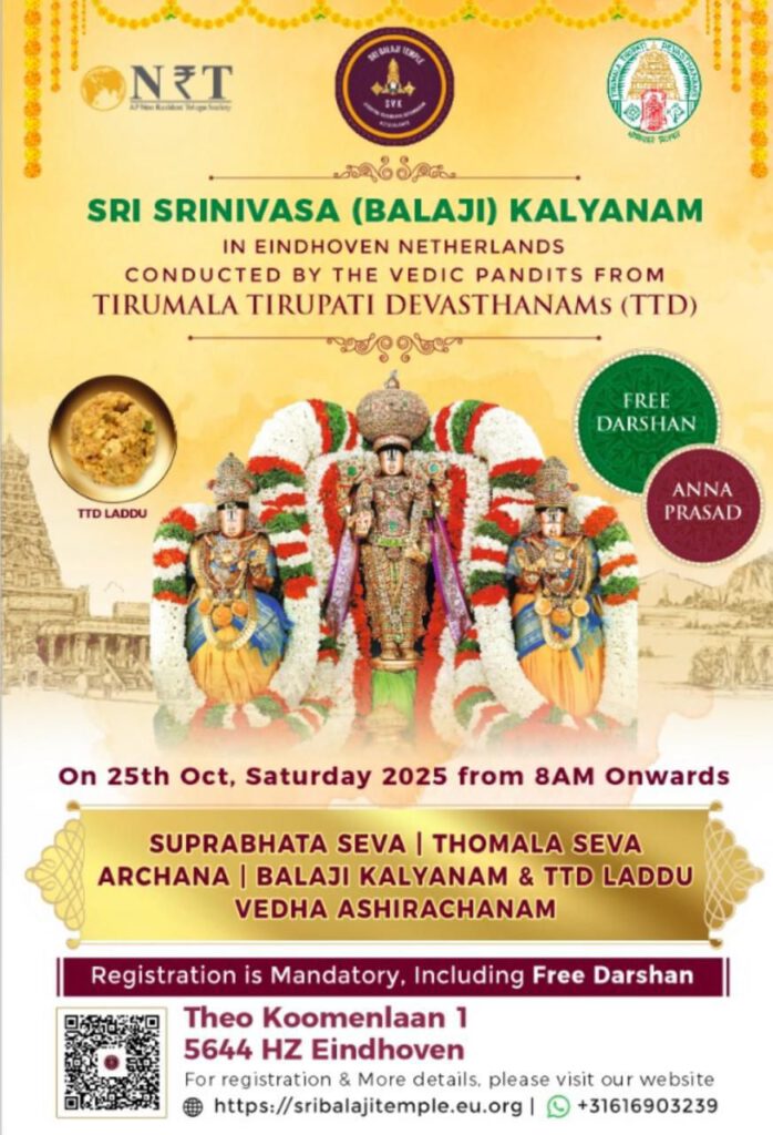 All are invited to attend Lord Sri Balaji Kalyana Mahotsav. Devotees can register for Sri Balaji Suprabatha Seva, Sri Balaji Thomala Seva, Vastra Samarpana, Sri Balaji Visesha Kalyana seva, Sri Balaji Kalyana Seva, Samuhika Kalyananthara Archana, Veda Asirvachanam, Sri Balaji Samastha Seva Kainkaryam, Sarvadarshan and receive Lord Sri Balaji’s blessings.